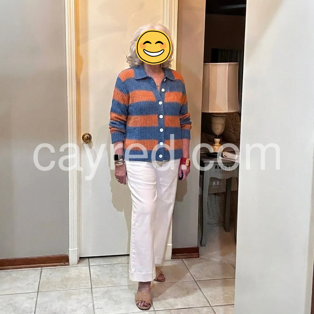 This Trendy Blue Striped Button Down Cardigan combines classic design with contemporary style. Featuring a timeless button-down front and bold blue stripes, it offers versatile layering for both casual and smart-casual looks. Crafted for comfort and ease of wear, this cardigan adds a refined touch to your wardrobe while ensuring practical warmth. Ideal for transitional seasons, it pairs well with a variety of outfits, providing a polished yet relaxed appearance.