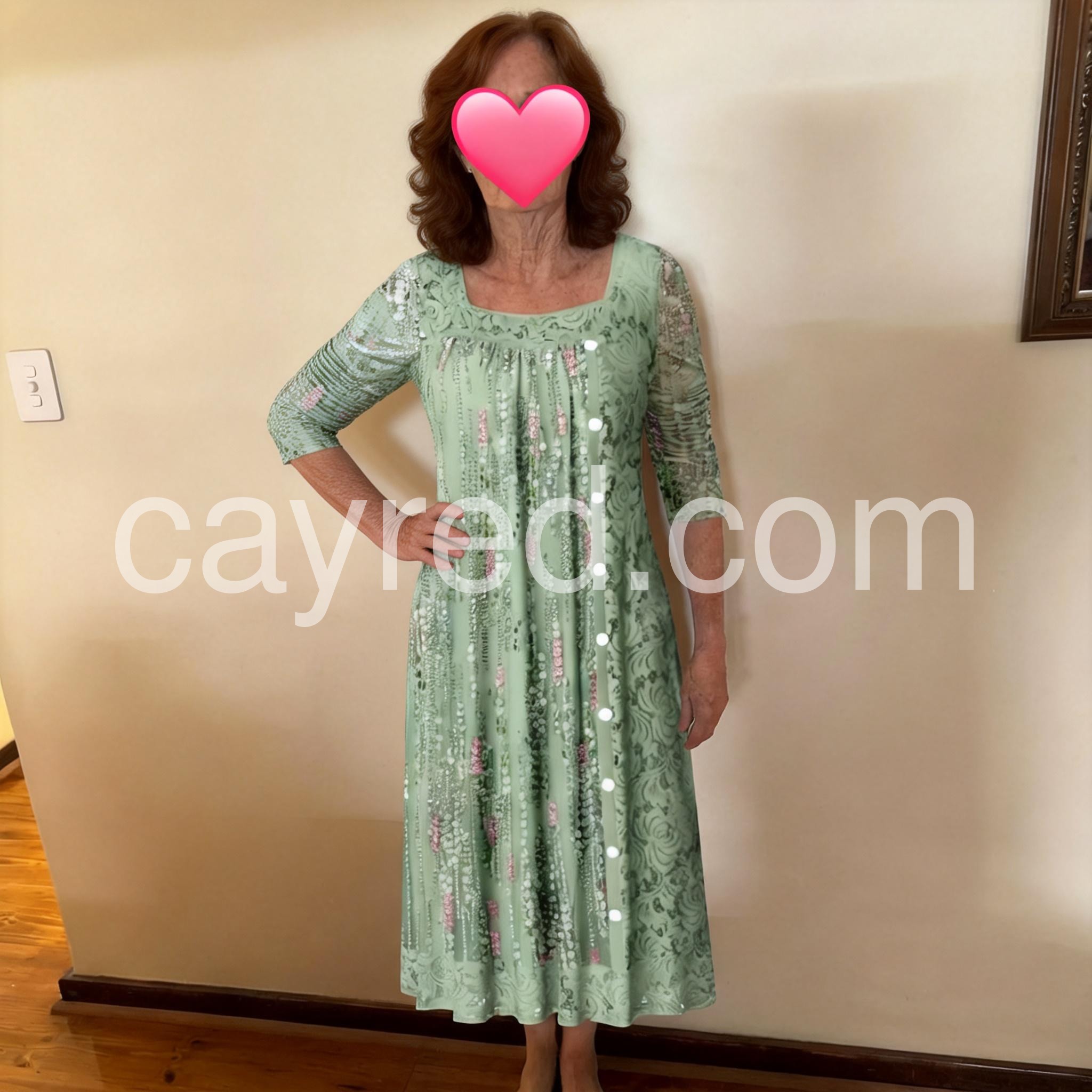 Imagine effortless elegance that turns heads at every glance. This fresh green midi dress captures modern sophistication with its architectural square neckline that frames the collarbone beautifully, paired with graceful long sleeves for refined polish. The A-line silhouette flows with understated grace, while the luxurious rayon-elastane blend moves like silk against your skin—stretchy enough for all-day comfort, yet structured enough to maintain its impeccable shape. Practical side pockets add a touch of everyday luxury, while the midi length strikes the perfect balance between timeless and contemporary. Whether you're navigating the office, attending weekend brunches, or stepping into evening plans, this dress adapts seamlessly to your lifestyle. Machine washable for effortless care. Discover the dress that makes you feel as good as you look.