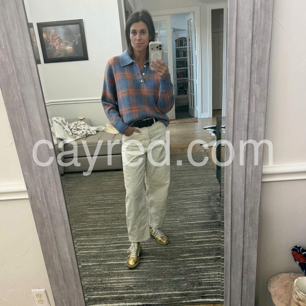 Blue Plaid Long Sleeve Button Front Knit Polo Sweater
