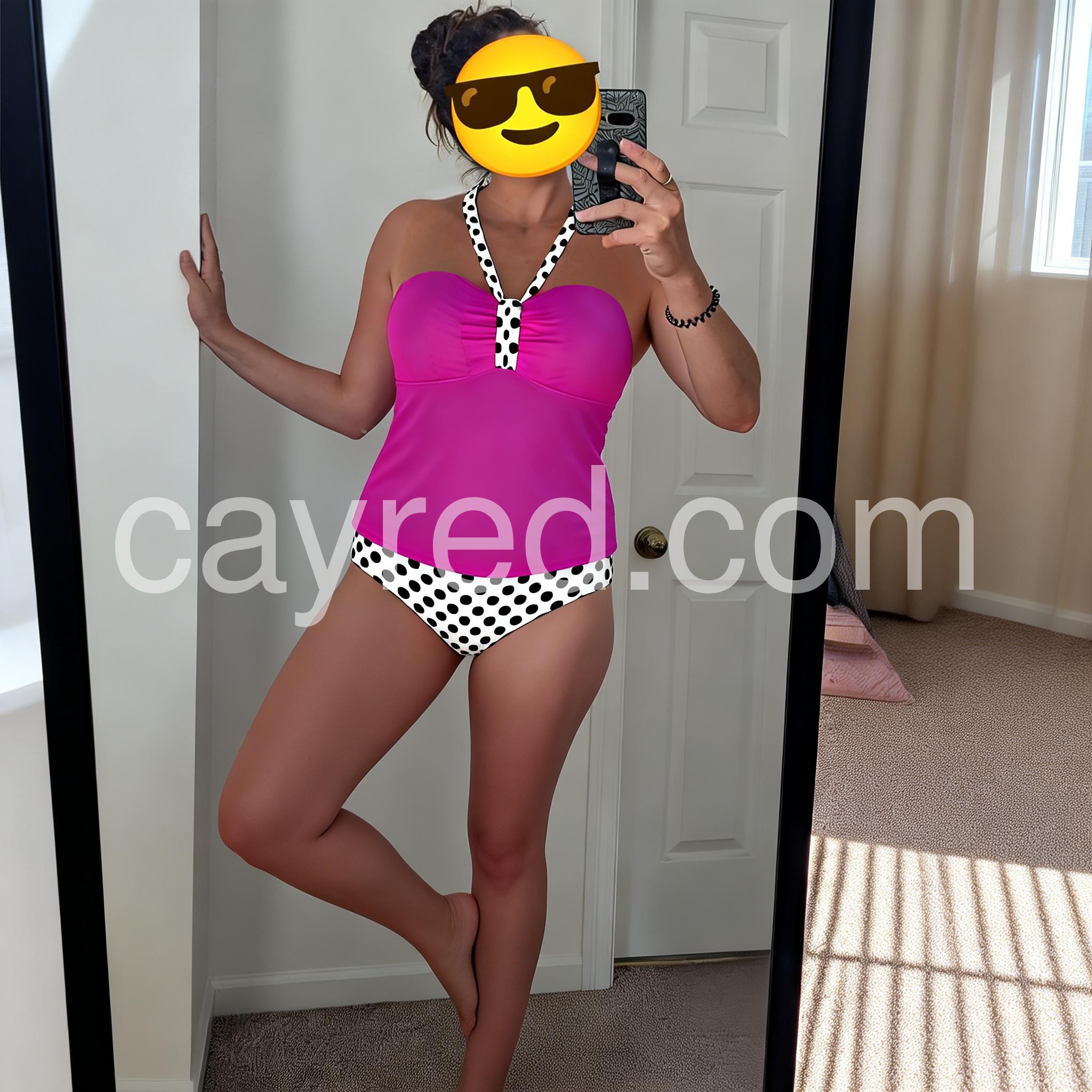 Showy Fuchsia Halter Polka Dot Swimwear
