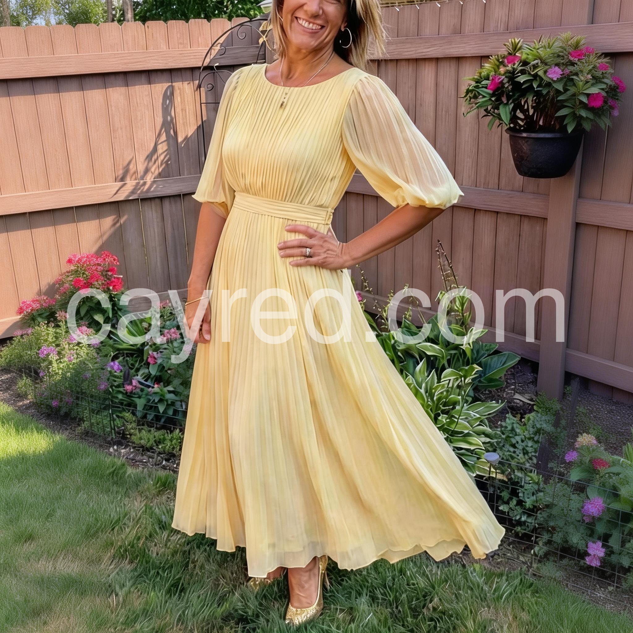Elevate your wardrobe with this sophisticated Yellow Plain Round Neck Maxi Dress. Designed with clean lines and a timeless silhouette, this floor-length dress combines comfort with elegance. The vibrant yellow hue brightens your appearance while the versatile round neckline flatters all face shapes. Perfect for formal events, summer gatherings, or styled with accessories for an elevated everyday look.