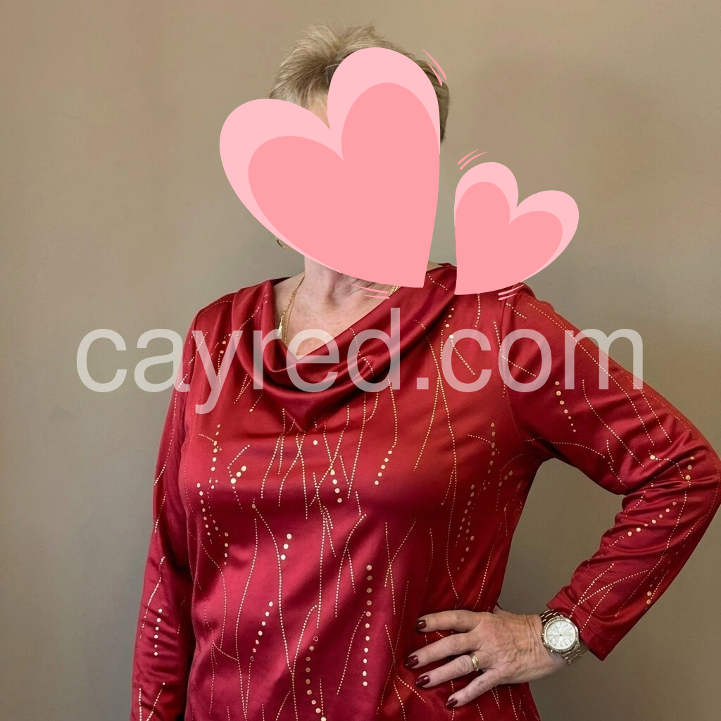 Elevate your wardrobe with this sophisticated red long sleeve top, featuring a subtle gold dotted pattern that adds a refined touch. Crafted for comfort and style, its tailored fit complements various occasions, making it an ideal choice for layering or wearing solo with ease. The gold accents catch the light delicately, enhancing your look with understated elegance throughout the day.