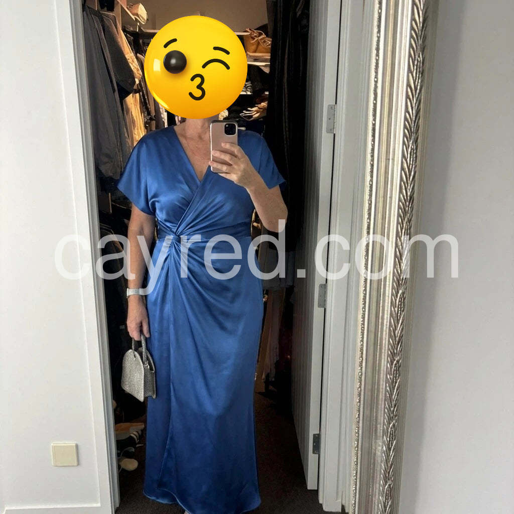 Introducing our Unique V-Neck Plain Short Sleeve Midi Dress! This dress combines style and comfort with its V-neck design and short sleeves, perfect for any occasion. Made with high-quality material, it's sure to make you stand out in a crowd. Upgrade your wardrobe with this elegant and versatile piece.