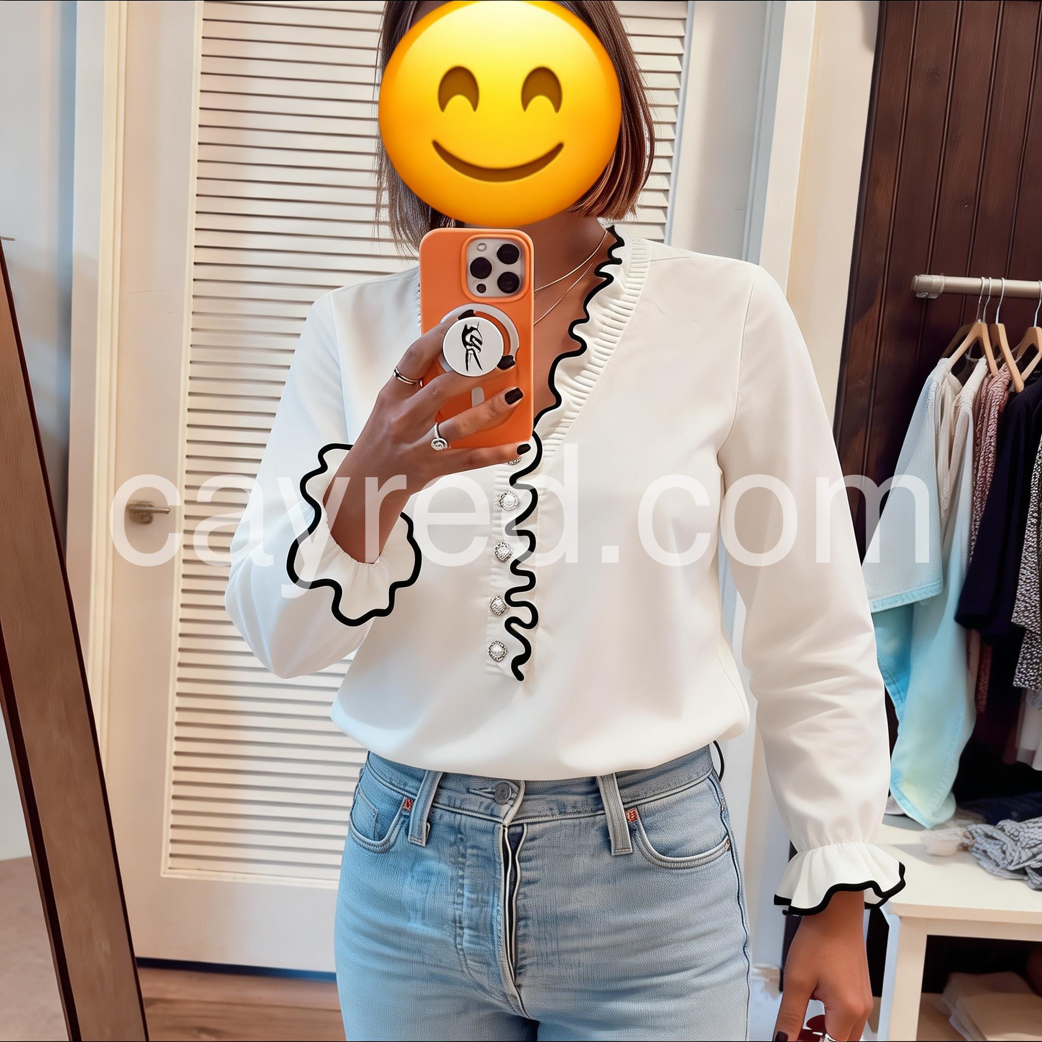 This Unique Trim V-Neck Long Sleeve Sweater offers both style and comfort, making it a versatile addition to any wardrobe. The unique trim detail and v-neck design add a touch of sophistication, while the long sleeves provide warmth. Crafted with high-quality materials, this sweater is both durable and soft to the touch.